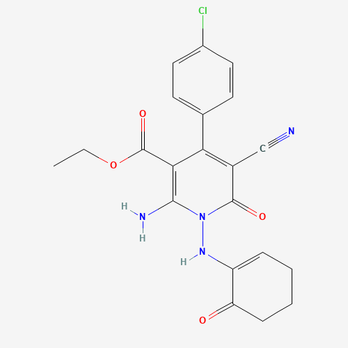 - Name: Ethyl 2-amino-4-(4-chlorophenyl)-5-cyano-6-oxo-1-[(6-oxocyclohexen-1-yl)amino]pyridine-3-carboxylate