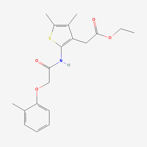 - Synonyms:AKOS024327121;ETHYL (4,5-DIMETHYL-2-(((2-METHYLPHENOXY)ACETYL)AMINO)-3-THIENYL)ACETATE