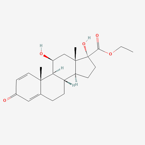 - Synonyms:Etiprednol;182069-13-2;UNII-08052A2L6I;08052A2L6I;Androsta-1,4-diene-17-carboxylic acid, 11,17-dihydroxy-3-oxo-, ethyl ester, (11beta,17alpha)-;SCHEMBL1685716;DTXSID30171237;Q27236333;ANDROSTA-1,4-DIENE-17-CARBOXYLIC ACID, 11,17-DIHYDROXY-3-OXO-, ETHYL ESTER, (11.BETA.,17.ALPHA.)-