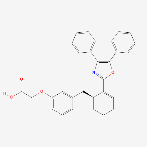 - Synonyms:FR-181157 free acid;UNII-M0U5R02TW3;M0U5R02TW3;200433-03-0;Acetic acid, (3-(((1S)-2-(4,5-diphenyl-2-oxazolyl)-2-cyclohexen-1-yl)methyl)phenoxy)-;Acetic acid, (3-((2-(4,5-diphenyl-2-oxazolyl)-2-cyclohexen-1-yl)methyl)phenoxy)-, (S)-;Acetic acid, 2-(3-(((1S)-2-(4,5-diphenyl-2-oxazolyl)-2-cyclohexen-1-yl)methyl)phenoxy)-;SCHEMBL6616915;CHEMBL1205677;Q27283321