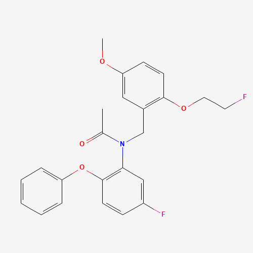 - Synonyms:Fedaa-1106;Fedaa1106;UNII-684F91Q1TR;CHEMBL292092;684F91Q1TR;Acetamide, N-((2-(2-fluoroethoxy)-5-methoxyphenyl)methyl)-N-(5-fluoro-2-phenoxyphenyl)-;505084-41-3;FluoroethylDAA-1106;BDBM50122294;Q27264214;N-(5-fluoro-2-phenoxyphenyl)-N-(2-(2-fluoroethoxy)-5-methoxybenzyl)acetamide;N-[2-(2-Fluoro-ethoxy)-5-methoxy-benzyl]-N-(5-fluoro-2-phenoxy-phenyl)-acetamide