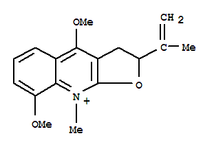 - Name: Furo[2,3-b]quinolinium,2,3-dihydro-4,8-dimethoxy-9-methyl-2-(1-methylethenyl)- (9CI)