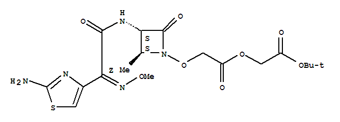 - Synonyms:Aceticacid,[[(2S,3S)-3-[[(2Z)-(2-amino-4-thiazolyl)(methoxyimino)acetyl]amino]-2-methyl-4-oxo-1-azetidinyl]oxy]-,2-(1,1-dimethylethoxy)-2-oxoethyl ester (9CI); Acetic acid,[[3-[[(2-amino-4-thiazolyl)(methoxyimino)acetyl]amino]-2-methyl-4-oxo-1-azetidinyl]oxy]-,2-(1,1-dimethylethoxy)-2-oxoethyl ester, [2S-[2a,3b(Z)]]-; Gloximonam; SQ 82531