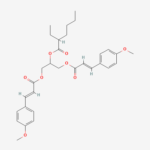 - Synonyms:LU2X1GC06D;UNII-LU2X1GC06D;Glyceryl ethylhexanoate dimethoxycinnamate;Glyceryl ethylhexanoate dimethoxycinnamate [INCI];140208-36-2