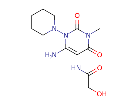 - Synonyms:Glycolamide, N-(6-amino-1,2,3,4-tetrahydro-3-methyl-2,4-dioxo-1-piperidino-5-pyrimidinyl)- (7CI)
