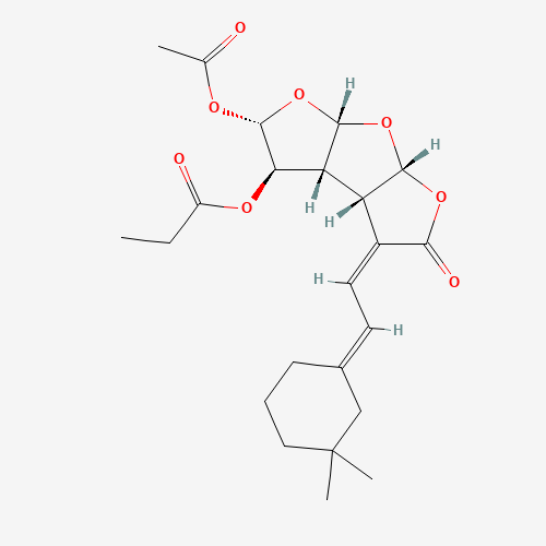 - Synonyms:Gracilin D;106849-36-9;C23-H30-O8;Difuro(2,3-b:3',2'-d)furan-2(3H)-one, 5-(acetyloxy)-3-((3,3-dimethylcyclohexylidene)ethylidene)hexahydro-4-(1-oxopropoxy)-, (3aS-(3Z(E),3aalpha,3balpha,4alpha,5beta,6aalpha,7aalpha))-