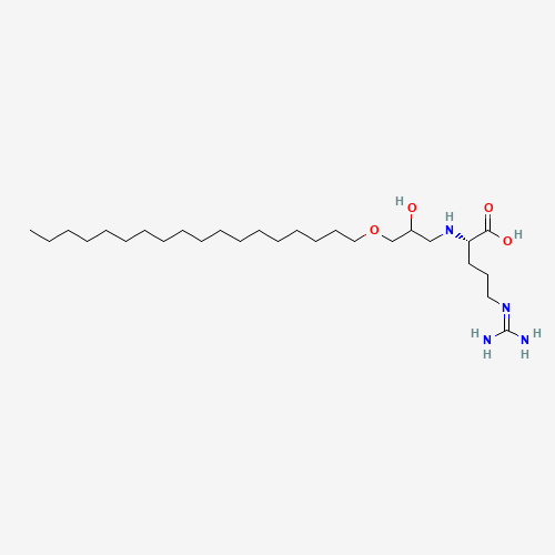 - Synonyms:Hydroxypropyl arginine stearyl ether;UNII-IB54N7QU6M;IB54N7QU6M;L-Arginine, N2-(2-hydroxy-3-(octadecyloxy)propyl)-;273200-35-4;(2S)-5-Guanidino-2-((2-hydroxy-3-octadecoxy-propyl)amino)pentanoic acid;DTXSID20181769;Q27280646