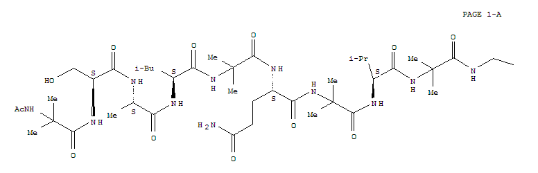 - Synonyms:L-Glutamamide,N-acetyl-2-methylalanyl-L-seryl-L-alanyl-L-leucyl-2-methylalanyl-L-glutaminyl-2-methylalanyl-L-valyl-2-methylalanylglycyl-2-methylalanyl-2-methylalanyl-L-prolyl-L-leucyl-2-methylalanyl-2-methylalanyl-N1-[(1S)-1-(hydroxymethyl)-2-methylpropyl]-