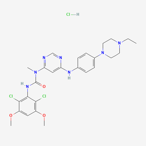 - Synonyms:Infigratinib hydrochloride;BGJ-398 hydrochloride;UNII-WY8VD4RV77;WY8VD4RV77;1310746-15-6;Urea, N'-(2,6-dichloro-3,5-dimethoxyphenyl)-N-(6-((4-(4-ethyl-1-piperazinyl)phenyl)amino)-4-pyrimidinyl)-N-methyl-, hydrochloride (1:1);INFIGRATINIB HYDROCHLORIDE [WHO-DD];Q27293042