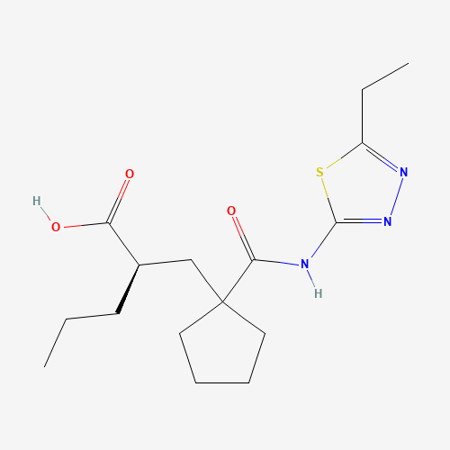 - Synonyms:(R)-2-((1-((5-ethyl-1,3,4-thiadiazol-2-yl) carbamoyl)cyclopentyl)methyl)valeric acid;UK-414,495