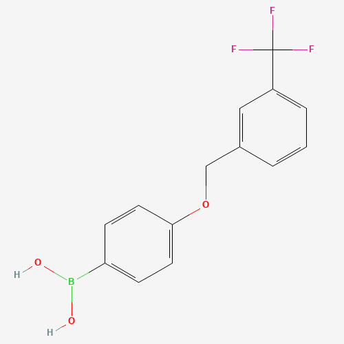 - Synonyms:JDWJQMAEUAMSFC-UHFFFAOYSA-N;DTXSID301186125;[4-[[3-(trifluoromethyl)phenyl]methoxy]phenyl]boronic acid;B-[4-[[3-(Trifluoromethyl)phenyl]methoxy]phenyl]boronic acid;1311164-08-5