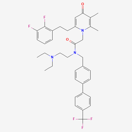 - Synonyms:CHEMBL533627;SCHEMBL13822949;JQWVMQPMTCHLGX-UHFFFAOYSA-N;DTXSID301100098;1026003-16-6;N-[2-(diethylamino)ethyl]-2-[6-[2-(2,3-difluorophenyl)ethyl]-2,3-dimethyl-4-oxopyridin-1-yl]-N-[[4-[4-(trifluoromethyl)phenyl]phenyl]methyl]acetamide;N-[2-(Diethylamino)ethyl]-6-[2-(2,3-difluorophenyl)ethyl]-2,3-dimethyl-4-oxo-N-[[4'-(trifluoromethyl)[1,1'-biphenyl]-4-yl]methyl]-1(4H)-pyridineacetamide