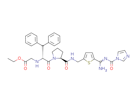 - 640729-13-1/L-Prolinamide, N-(2-ethoxy-2-oxoethyl)-b-phenyl-D-phenylalanyl-N-[[5-[[(1H-imidazol-1- ylcarbonyl)amino]iminomethyl]-2-thienyl]methyl]-