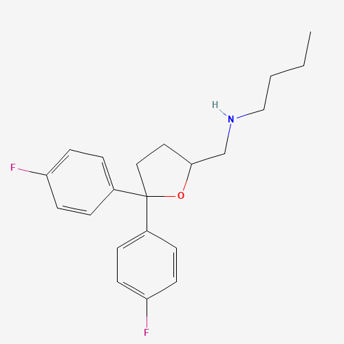 - Synonyms:LY-393615 free base;774528-12-0;2-Furanmethanamine, n-butyl-5,5-bis(4-fluorophenyl)tetrahydro-;353156ZMV3;UNII-353156ZMV3;SCHEMBL11938925;N-[[5,5-bis(4-fluorophenyl)oxolan-2-yl]methyl]butan-1-amine;AKOS040752791;Q27256412