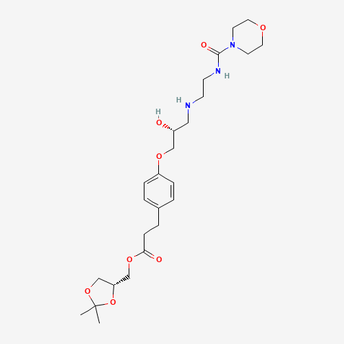 - Synonyms:Landiolol, (2R,4R)-;X4U4ZN24LC;ONO-Sa 062;UNII-X4U4ZN24LC;144256-25-7;((4R)-2,2-Dimethyl-1,3-dioxolan-4-yl)methyl 3-(4-((2R)-2-hydroxy-3-((2-((morpholin-4-ylcarbonyl)amino)ethyl)amino)propoxy)phenyl)propanoate;Benzenepropanoic acid, 4-((2R)-2-hydroxy-3-((2-((4-morpholinylcarbonyl)amino)ethyl)amino)propoxy)-, ((4R)-2,2-dimethyl-1,3-dioxolan-4-yl)methyl ester;[(4R)-2,2-dimethyl-1,3-dioxolan-4-yl]methyl 3-(4-{(2R)-2-hydroxy-3-[{2-[(morpholin-4-ylcarbonyl)amino]ethyl}amino]propoxy}phenyl)propanoate;Benzenepropanoic acid, 4-[(2R)-2-hydroxy-3-[[2-[(4-morpholinylcarbonyl)amino]ethyl]amino]propoxy]-, [(4R)-2,2-dimethyl-1,3-dioxolan-4-yl]methyl ester