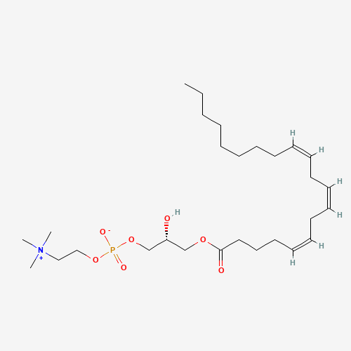 - Synonyms:LysoPC(20:3(5Z,8Z,11Z));1-meadoyl-glycero-3-phosphocholine;1-meadoyl-sn-glycero-3-phosphocholine;LysoPC(20:3(5Z,8Z,11Z)/0:0);1199257-41-4;(2-{[(2R)-2-hydroxy-3-[(5Z,8Z,11Z)-icosa-5,8,11-trienoyloxy]propyl phosphonato]oxy}ethyl)trimethylazanium;(R)-2-Hydroxy-3-((5Z,8Z,11Z)-icosa-5,8,11-trienoyloxy)propyl (2-(trimethylammonio)ethyl) phosphate;CHEBI:74343;LysoPC(20:3n9/0:0);LysoPC(20:3w9/0:0);DTXSID301101927;LyPC(20:3n9/0:0);LyPC(20:3w9/0:0);LMGP01050139;LPC(20:3n9/0:0);LPC(20:3w9/0:0);Lysophosphatidylcholine(20:3n9/0:0);Lysophosphatidylcholine(20:3w9/0:0);HY-113029;CS-0059387;LysoPC 20:3(5Z,8Z,11Z)/0:0;LPC 20:3(5Z,8Z,11Z)/0:0;LPC(20:3(5Z,8Z,11Z)/0:0);lysophosphatidylcholine(20:3(5Z,8Z,11Z)/0:0);PC 20:3(5Z,8Z,11Z)/0:0;PC(20:3(5Z,8Z,11Z)/0:0);Q27144624;(2R)-2-hydroxy-3-[(5Z,8Z,11Z)-icosa-5,8,11-trienoyloxy]propyl 2-(trimethylammonio)ethyl phosphate;3,5,9-Trioxa-4-phosphanonacosa-14,17,20-trien-1-aminium, 4,7-dihydroxy-N,N,N-trimethyl-10-oxo-, inner salt, 4-oxide, (7R,14Z,17Z,20Z)-