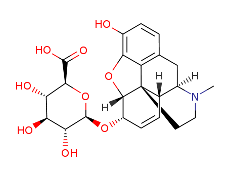 - Synonyms:Glucopyranosiduronicacid, 7,8-didehydro-4,5a-epoxy-3-hydroxy-17-methylmorphinan-6a-yl, b-D- (8CI); Morphinan, b-D-glucopyranosiduronic acid deriv.; Morphinan-3-ol, 7,8-didehydro-4,5a-epoxy-6a-(b-D-glucopyranuronosyloxy)-17-methyl- (8CI); Morphine6-O-glucuronide; Morphine 6-glucuronide; Morphine 6-b-D-glucopyranosiduronide; Morphine 6-b-D-glucuronide; Morphineglucuronide