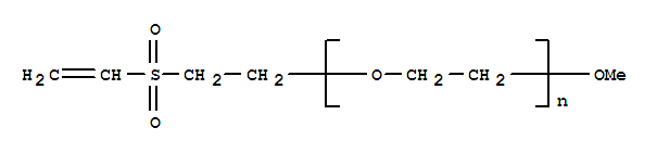 - Synonyms:O-METHYL-O’-[2-(VINYLSULFONYL)ETHYL]POLYETHYLENE GLYCOL 5,000;MONO-METHYL POLYETHYLENE GLYCOL 5,000 2-(VINYLSULFONYL)ETHYL ETHER;METHOXYPOLYETHYLENE GLYCOL 5,000 2-(VINYLSULFONYL)ETHYL ETHER;O-[2-(vinylsulfonyl)ethyl]-O’-me-poly-ethyleneglycol 5000;O-[2-(Vinylsulfonyl)ethyl]-Oμ-methylpolyethylene glycol, mono-Methyl polyethylene glycol 5μ000 2-(vinylsulfonyl)ethyl ether, O-Methyl-Oμ-[2-(vinylsulfonyl)ethyl]polyethylene glycol 5μ000
