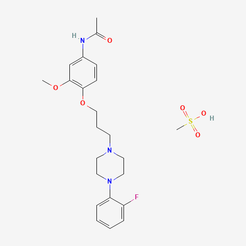 - Synonyms:Mafoprazine mesylate;Mafoprazine mesilate;XK8XMW4J8Z;Mafoprazine mesilate [JAN];IK-640;IK640;UNII-XK8XMW4J8Z;Acetamide, N-(4-(3-(4-(2-fluorophenyl)-1-piperazinyl)propoxy)-3-methoxyphenyl)-, methanesulfonate (1:1);Acetamide, N-(4-(3-(4-(2-fluorophenyl)-1-piperazinyl)propoxy)-3-methoxyphenyl)-, monomethanesulfonate;Mafoprane;80428-31-5;CHEBI:81707;C18361;Q27155572;84374-39-0;N-[4-[3-[4-(2-fluorophenyl)piperazin-1-yl]propoxy]-3-methoxyphenyl]acetamide;methanesulfonic acid
