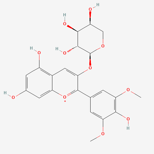 - Synonyms:Malvidin 3-arabinoside cation;Malvidin-3-o-arabinoside cation;UNII-92990B3W03;785047-89-4;92990B3W03;1-Benzopyrylium, 3-(arabinosyloxy)-5,7-dihydroxy-2-(4-hydroxy-3,5-dimethoxyphenyl)-;1-Benzopyrylium, 3-(alpha-L-arabinopyranosyloxy)-5,7-dihydroxy-2-(4-hydroxy-3,5-dimethoxyphenyl)-;Malvidin 3-O-arabinoside;CHEBI:176360;Q27271492;(2S,3R,4S,5S)-2-[5,7-dihydroxy-2-(4-hydroxy-3,5-dimethoxyphenyl)chromenylium-3-yl]oxyoxane-3,4,5-triol;1-BENZOPYRYLIUM, 3-(.ALPHA.-L-ARABINOPYRANOSYLOXY)-5,7-DIHYDROXY-2-(4-HYDROXY-3,5-DIMETHOXYPHENYL)-