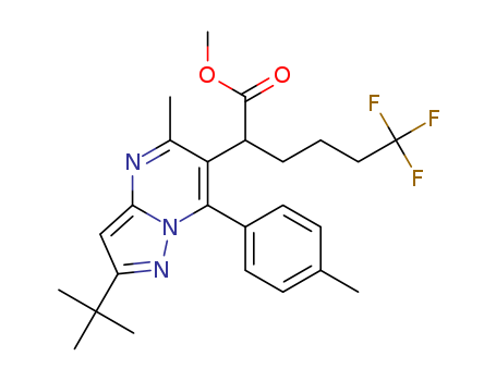 - Synonyms:Methyl 2-(2-tert-butyl-7-p-tolyl-5-methylpyrazolo[1,5-a]pyrimidin-6-yl)-6,6,6-trifluorohexanoate