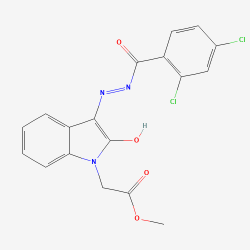 - Synonyms:624726-14-3;AKOS024413174;Methyl 2-(3-(2-(2,4-dichlorobenzoyl)hydrazono)-2-oxoindolin-1-yl)acetate;Methyl2-(3-(2-(2,4-dichlorobenzoyl)hydrazono)-2-oxoindolin-1-yl)acetate;methyl {(3Z)-3-[(2,4-dichlorobenzoyl)hydrazono]-2-oxo-2,3-dihydro-1H-indol-1-yl}acetate
