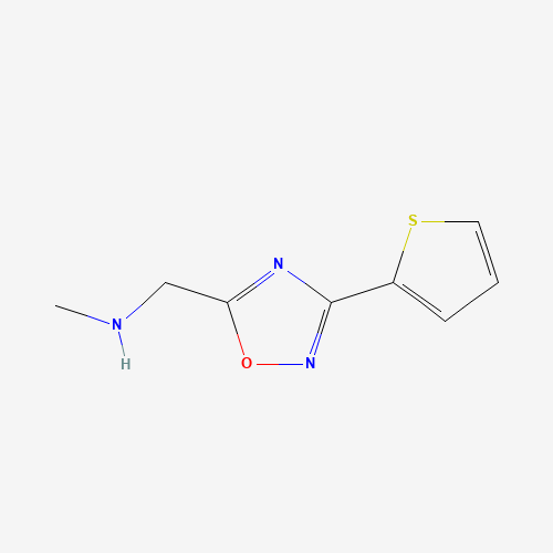- Synonyms:methyl({[3-(thiophen-2-yl)-1,2,4-oxadiazol-5-yl]methyl})amine;933683-08-0;N-methyl-1-(3-thiophen-2-yl-1,2,4-oxadiazol-5-yl)methanamine;METHYL(([3-(THIOPHEN-2-YL)-1,2,4-OXADIAZOL-5-YL]METHYL))AMINE;DTXSID001215725;AKOS009033593;CS-0239107;EN300-205777;G54121;N-Methyl-3-(2-thienyl)-1,2,4-oxadiazole-5-methanamine;N-METHYL[3-(2-THIENYL)-1,2,4-OXADIAZOL-5-YL]METHANAMINE
