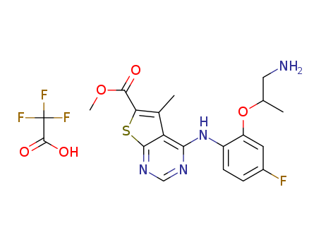 - Synonyms:Methyl 4-(2-(1-aminopropan-2-yloxy)-4-fluorophenylamino)-5-methyl-thieno[2,3-d]pyrimidine-6-carboxylate trifluoroacetate