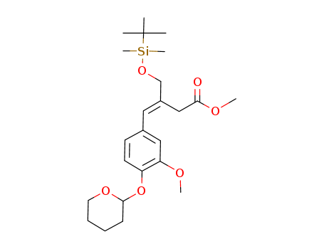Methyl (E)-3-tert-butyldimethylsilyloxymethyl-4-(3-methoxy-4-tetrahydropyran-2-yloxyphenyl)butenoate(137889-67-9)
