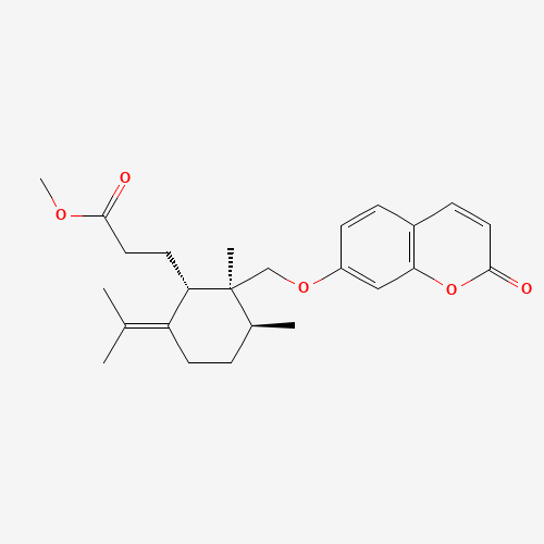 - Synonyms:methyl galbanate;CHEMBL1078629;SCHEMBL15080626;DTXSID701346507;STL564321;AKOS030489036;1206911-10-5;53696-76-7;methyl 3-[(1S,2S,3S)-2,3-dimethyl-2-{[(2-oxo-2H-chromen-7-yl)oxy]methyl}-6-(propan-2-ylidene)cyclohexyl]propanoate