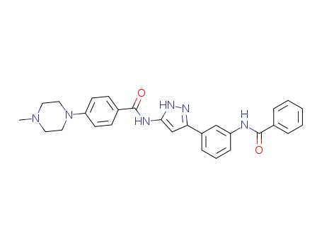 - Synonyms:N-3-[3-(benzoylamino)phenyl]-1H-pyrazol-5-yl-4-(4-methylpiperazino)benzamide