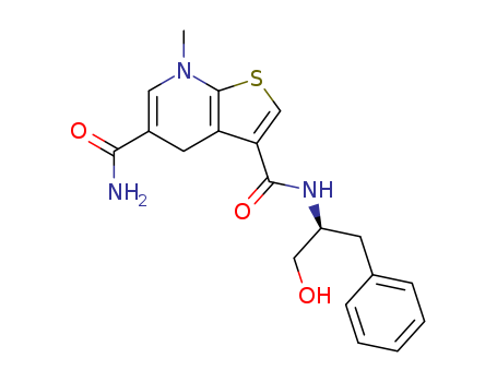 - Name: N-3-((S)-1-hydroxymethyl-2-phenylethyl)carboxamide-5-carbamoyl-7-methyl-4,7-dihydrothieno<2,3-b>pyridine
