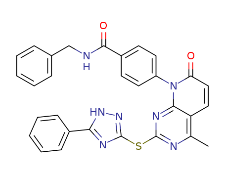 N-Benzyl-4-[4-methyl-7-oxo-2-(5-phenyl-1H-[1,2,4]triazol-3-ylsulfanyl)-7H-pyrido[2,3-d]pyrimidin-8-yl]-benzamide(583877-74-1)
