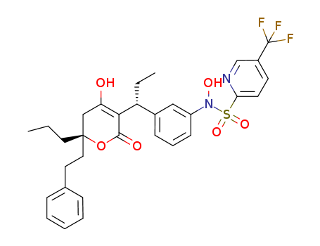 - Synonyms:N-Hydroxy Tipranavir;N-[3-[(1R)-1-[(6R)-5,6-Dihydro-4-hydroxy-2-oxo-6-(2-phenylethyl)-6-propyl-2H-pyran-3-yl]propyl]phenyl]-N-hydroxy-5-(trifluoroMethyl)-2-pyridinesulfonaMide