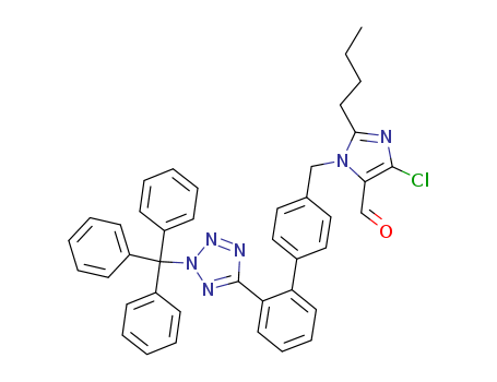 - Synonyms:2-n-Butyl-4-chloro-1-[(2'-(2-triphenylmethyl-2H-tetrazol 5-yl)-1,1'-biphenyl-4-yl)methyl]-1H-imidazole-5-carboxaldehyde;2-Butyl-5-chloro-3-[2'-(2-trityl-2H-tetrazol-5-yl)-biphenyl-4-ylmethyl]-3H-imidazole-4-carbaldehyde;2-n-butyl-4-chloro-1-{[2'-(2-triphenylmethyl-2H-tetrazol-5-yl)-1,1'-biphenyl-4-yl]methyl}-1H-imidazole-5-carbaldehyde;2-butyl-4-chloro-1-<<2'-<(triphenylmethyl)tetrazol-5-yl>biphenyl-4-yl>methyl>imidazole-5-carboxaldehyde;
