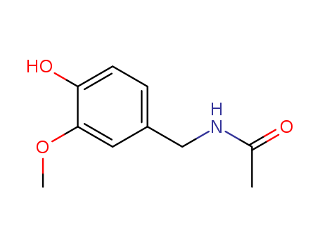 - Synonyms:N-(4-hydroxy-3-methoxybenzyl)acetamide;N-Vanillyl-acetamid;2-Methoxy-4-acetaminomethyl-phenol;N-(4-Oxy-3-methoxy-benzyl)-acetamid;N-vanillyl-acetamide;Essigsaeure-(4-oxy-3-methoxy-benzylamid);Acetamide,N-[(4-hydroxy-3-methoxyphenyl)methyl];