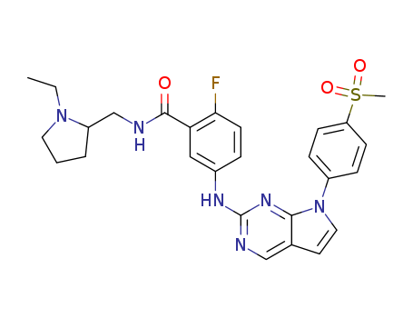 N-(1-Ethyl-pyrrolidin-2-ylmethyl)-2-fluoro-5-[7-(4-methanesulfonyl-phenyl)-7H-pyrrolo[2,3-d]pyrimidin-2-ylamino]-benzamide(1180155-04-7)