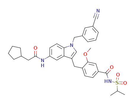 - Synonyms:N-{1-(3-Cyano-benzyl)-3-[2-methoxy-4-(propane-2-sulfonylaminocarbonyl)-benzyl]-1H-indol-5-yl}-2-cyclopentyl-acetamide