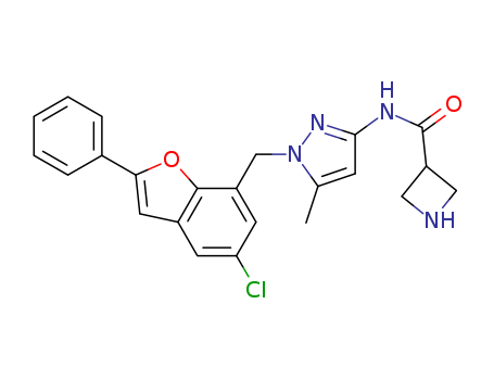 - Synonyms:N-{1-[(5-chloro-2-phenyl-benzofuran-7-yl)methyl]-5-methyl-1H-pyrazol-3-yl}-3-azetidinecarboxamide
