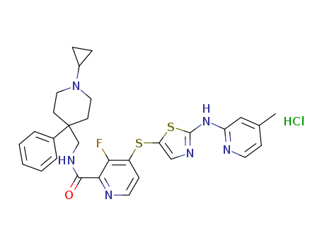 - Synonyms:N-((1-cyclopropyl-4-phenylpiperidin-4-yl)methyl)-3-fluoro-4-(2-(4-methylpyridin-2-ylamino)thiazol-5-ylthio)picolinamide hydrochloride