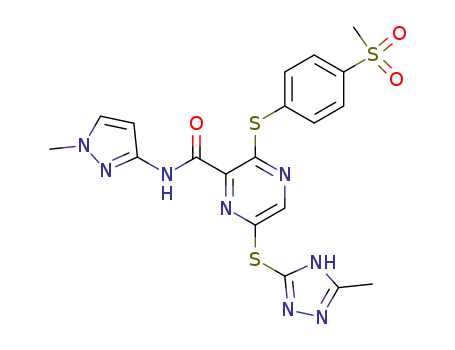 N-(1-methyl-1H-pyrazol-3-yl)-3-{[4-(methylsulfonyl)phenyl]sulfanyl)-6-[(5-methyl-4H-1,2,4-triazol-3-yl)sulfanyl]pyrazine-2-carboxamide(1093382-99-0)