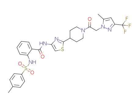 N-(2-{1-[2-(5-methyl-3-trifluoromethyl-pyrazol-1-yl)-acetyl]-piperidin-4-yl}-thiazol-4-yl)-2-(toluene-4-sulfonylamino)-benzamide(1263874-73-2)