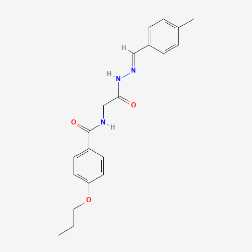 - Synonyms:AKOS024417171;N-(2-(2-(4-METHYLBENZYLIDENE)HYDRAZINO)-2-OXOETHYL)-4-PROPOXYBENZAMIDE