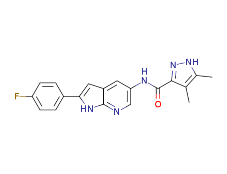 - Synonyms:N-[2-(4-fluorophenyl)-1H-pyrrolo[2,3-b]pyridin-5-yl]-3,4-dimethyl-1H-pyrazole-5-carboxamide
