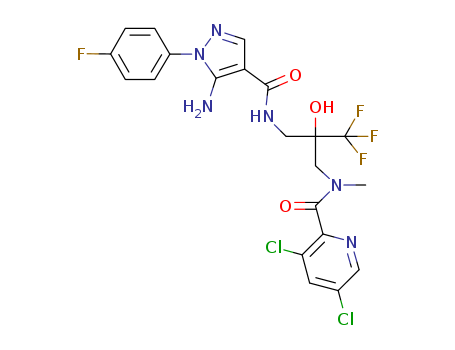 - Name: N-(2-(5-amino-1-(4-fluorophenyl)-1H-pyrazol-4-ylcarbonylaminomethyl)-3,3,3-trifluoro-2-hydroxypropyl)-3,5-dichloro-N-methyl-2-pyridinecarboxamide