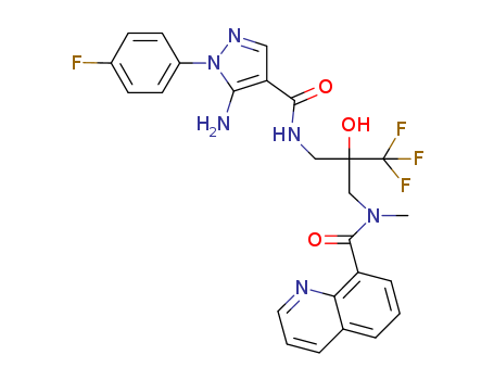 - Name: N-(2-(5-amino-1-(4-fluorophenyl)-1H-pyrazol-4-ylcarbonylaminomethyl)-3,3,3-trifluoro-2-hydroxypropyl)-N-methyl-8-quinolinecarboxamide
