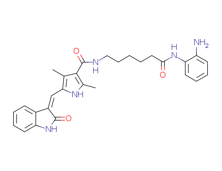 - Synonyms:N-(2-aminophenyl)-6-(5-(2-oxo-1,2-dihydroindol-(3Z)-ylidenemethyl)-2,4-dimethyl-1H-pyrrole-3-carbonyl)aminohexanamide