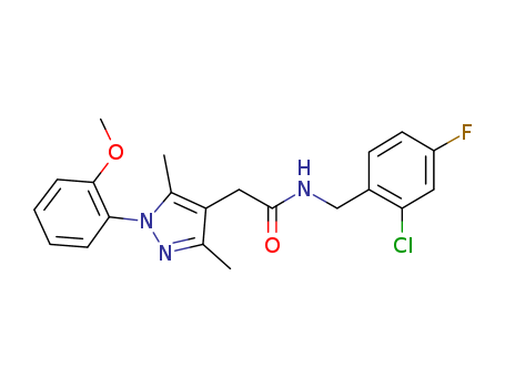 - Name: N-[(2-chloro-4-fluorophenyl)methyl]-2-(3,5-dimethyl-1-[2-(methyloxy)phenyl]-1H-pyrazol-4-yl)acetamide