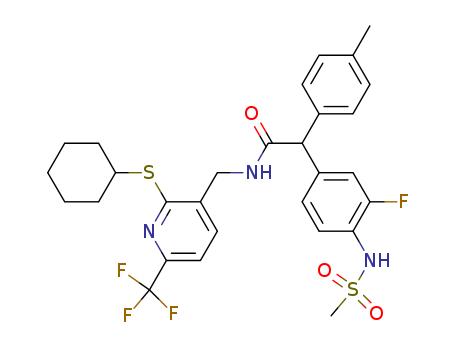 N-((2-cyclohexylthio-6-trifluoromethyl-pyridin-3-yl)methyl)-2-(3-fluoro-4-methylsulfonylamino-phenyl)-2-p-tolylacetamide(1072449-20-7)