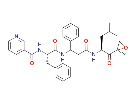 - Synonyms:N-{(2S)-1-{3-[(2S)-4-methyl-1-((2R)-2-methyloxiran-2-yl)-1-oxopentan-2-ylamino]-3-oxo-1-phenylpropylamino}-1-oxo-3-phenylpropan-2-yl}nicotinamide